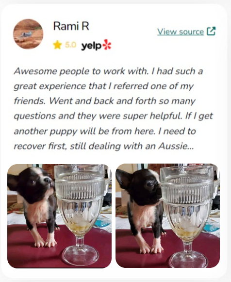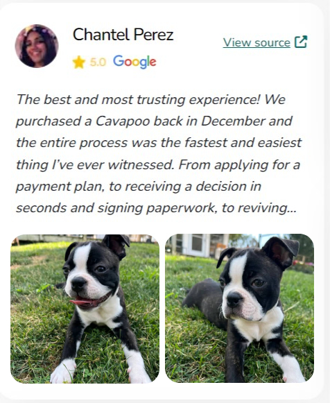 "I can't recommend this website enough for anyone looking to bring a new furry family member into their home. The website's commitment to connecting loving homes with healthy, well-cared-for puppies is truly commendable. My experience with this website was nothing short of amazing, and I am so grateful for the new addition to our family."